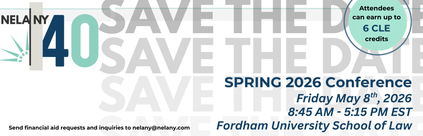 NELA/NY, the local affiliate of the National Employment Lawyers Association ("NELA"), advances and encourages the professional development of its members through networking, educational programs, publications and technical support. NELA/NY also promotes the workplace rights of individual workers and employees through legislation, a legal referral service, and other activities, with an emphasis on the special challenges presented by New York's employment laws.